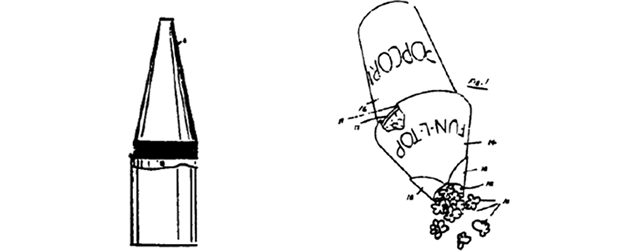 ポップコーンジョウロ(下図、右)は、衛生的で便利そうですが、先行技術のオイルのジョウロ(下図、左)に対して新規性欠如で拒絶。しかし、審査実務における三極比較研究(USPTO、EPO、JPO)の新規性に関する比較研究結果(2009年11月公表、下記リンク参照)も加えると、新規性あり:7名、新規性なし:9名の評価になるようだ。